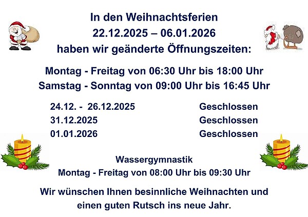 Geänderte Öffnungszeiten am 05.12.2025 und in den Weihnachtsferien 2025